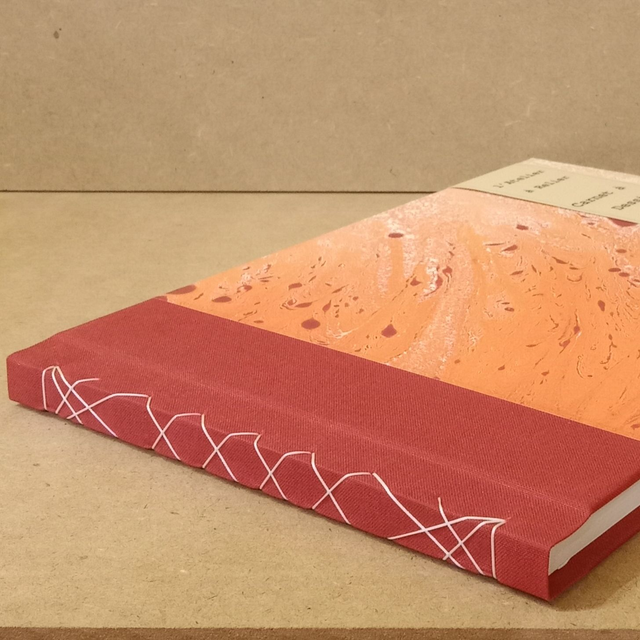 Format 17x24cm - reliure à la Japonaise - 116 pages d'un papier ecru 120gr pour le dessin techniques sèches mais convient également pour l'écriture (livre d'or) - couverture : papier marbré réalisé à l'atelier et toile assortie.