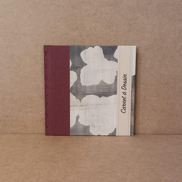 Format 16x16cm - reliure Japonaise - papier ecru 120gr grain fin : techniques sèches - 80 pages - couverture : impression artisanale réalisée à l'atelier et toile assortie